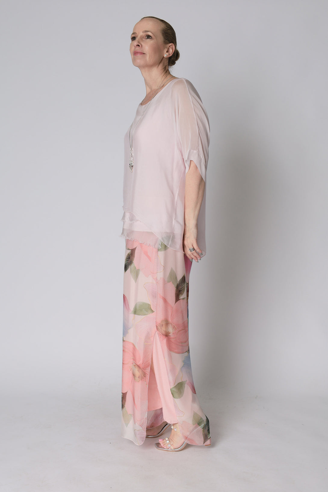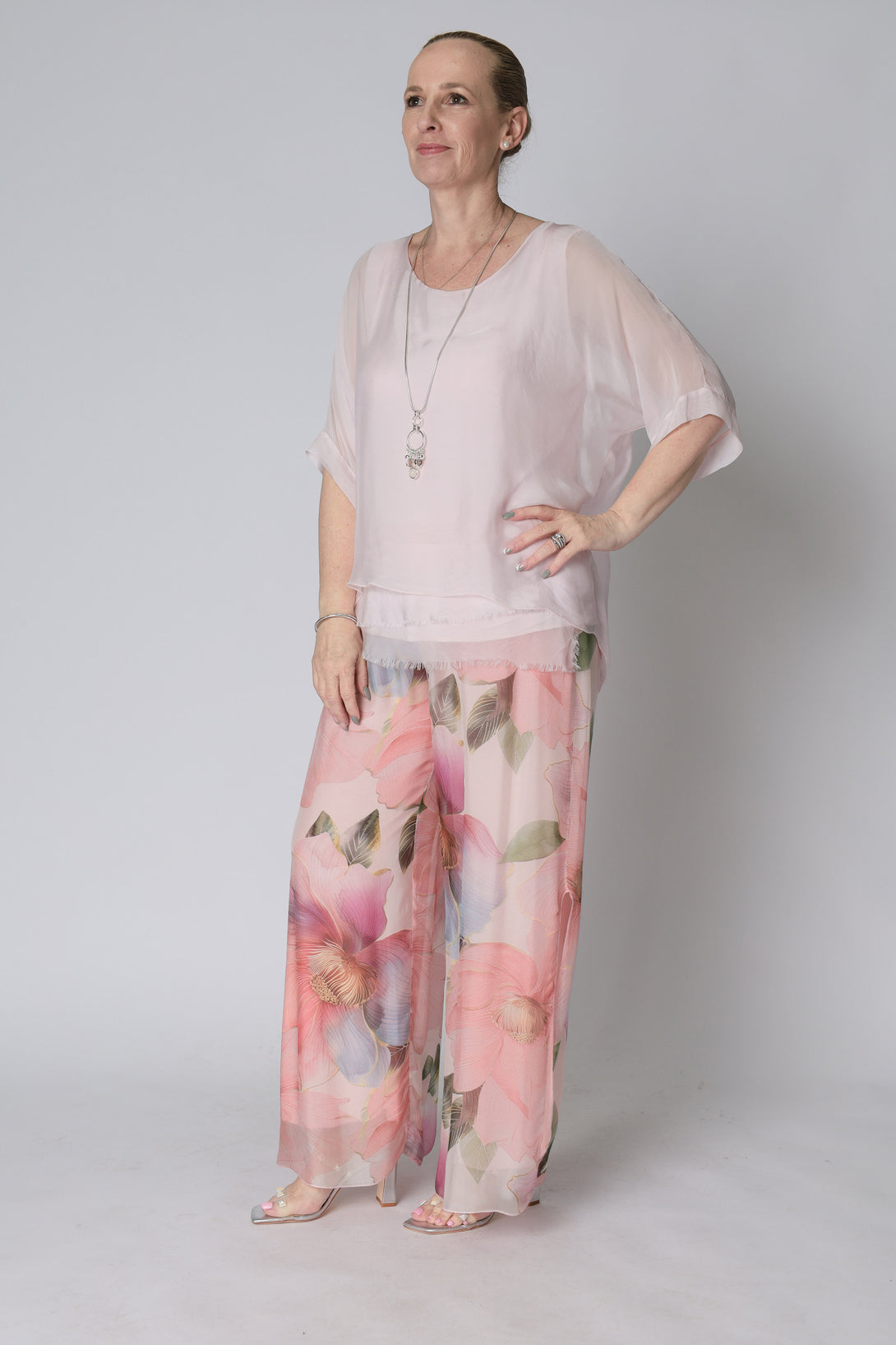 The Honor Silk Pants in Blush are an exquisite choice for those who value elegance and comfort. Ideal for warm summer days or sophisticated evening events, these silk pants offer a breath of fresh luxury. The large flower print brings a unique, graceful touch, making them a must-have addition to any carefully curated wardrobe.