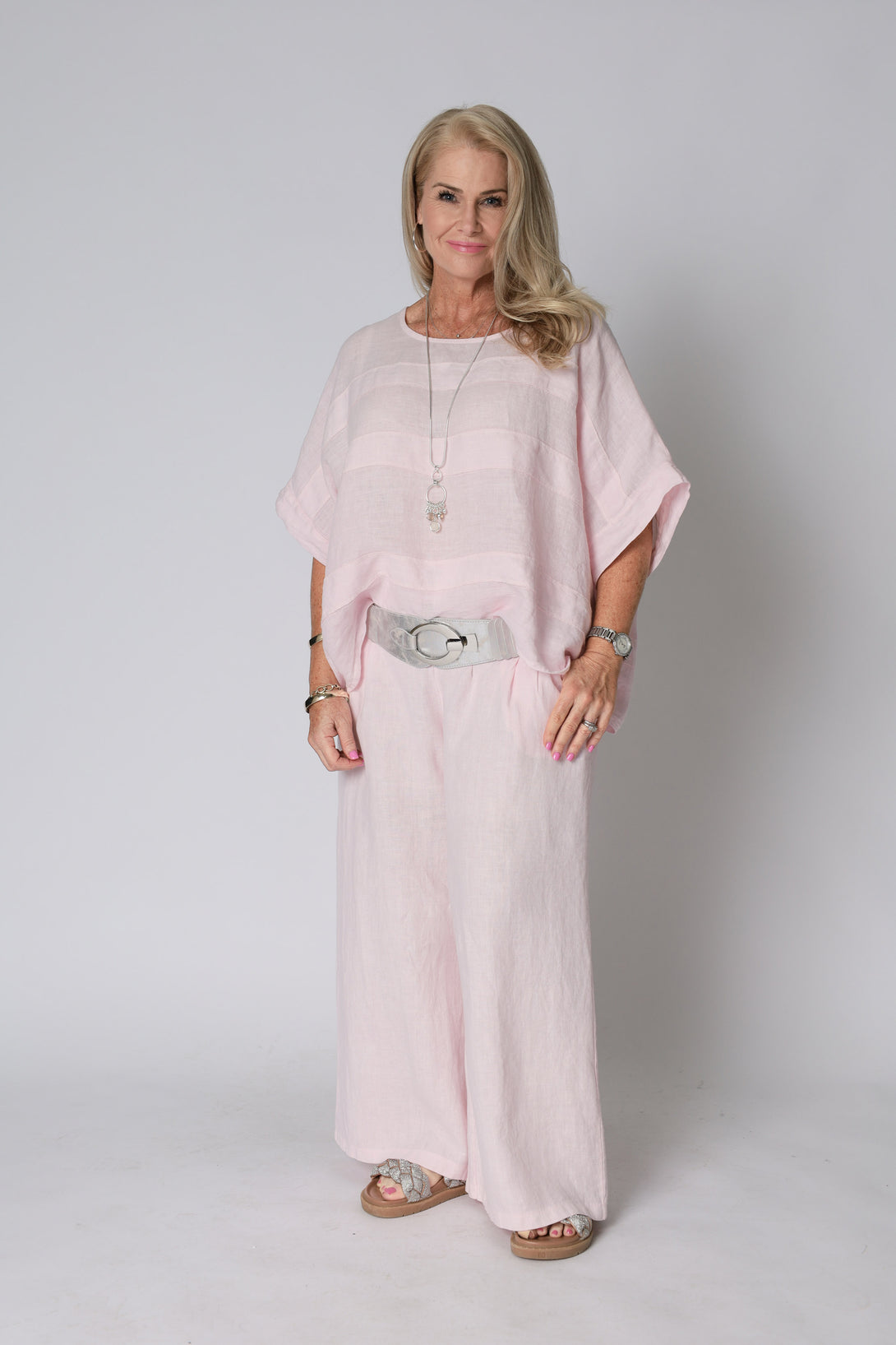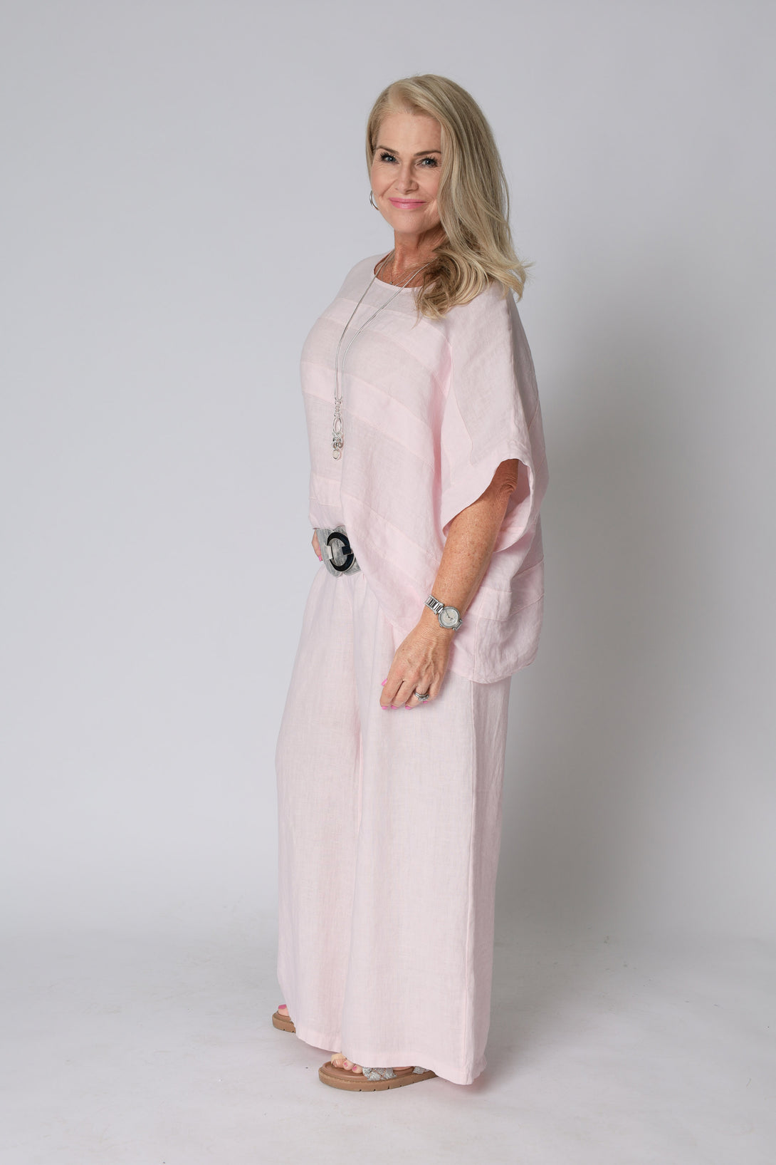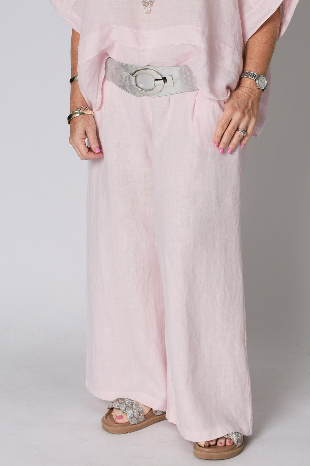 Renata Linen Pants in Modena Pink offer a chic yet practical choice for those seeking effortless sophistication and comfort in their summer wardrobe. Perfect for warm days, these wide leg linen pants are designed to keep you cool and stylish, making them an essential staple for holidays, weekends, or relaxed office wear.