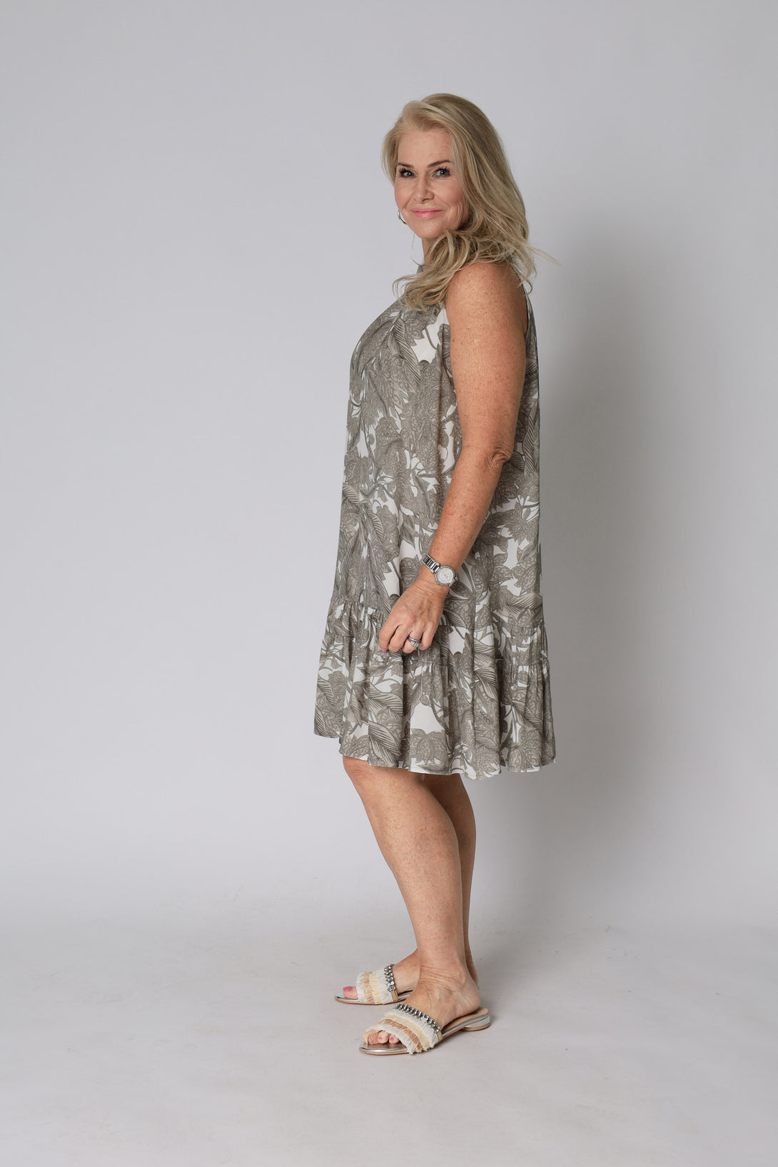 Featuring a sleeveless cut, the Zorana Dress in Mocha reaches to the knee for a flattering and modest fit. Its soft hues and subtle pattern elevate the classic summer dress look, while the comfortable sleeveless design promises unrestricted movement.